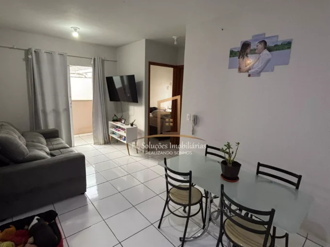 2 quartos sendo 1 suíte, Sala, Cozinha, Sacada, Área de serviço, Banheiro Social, Elevador, Garagem.