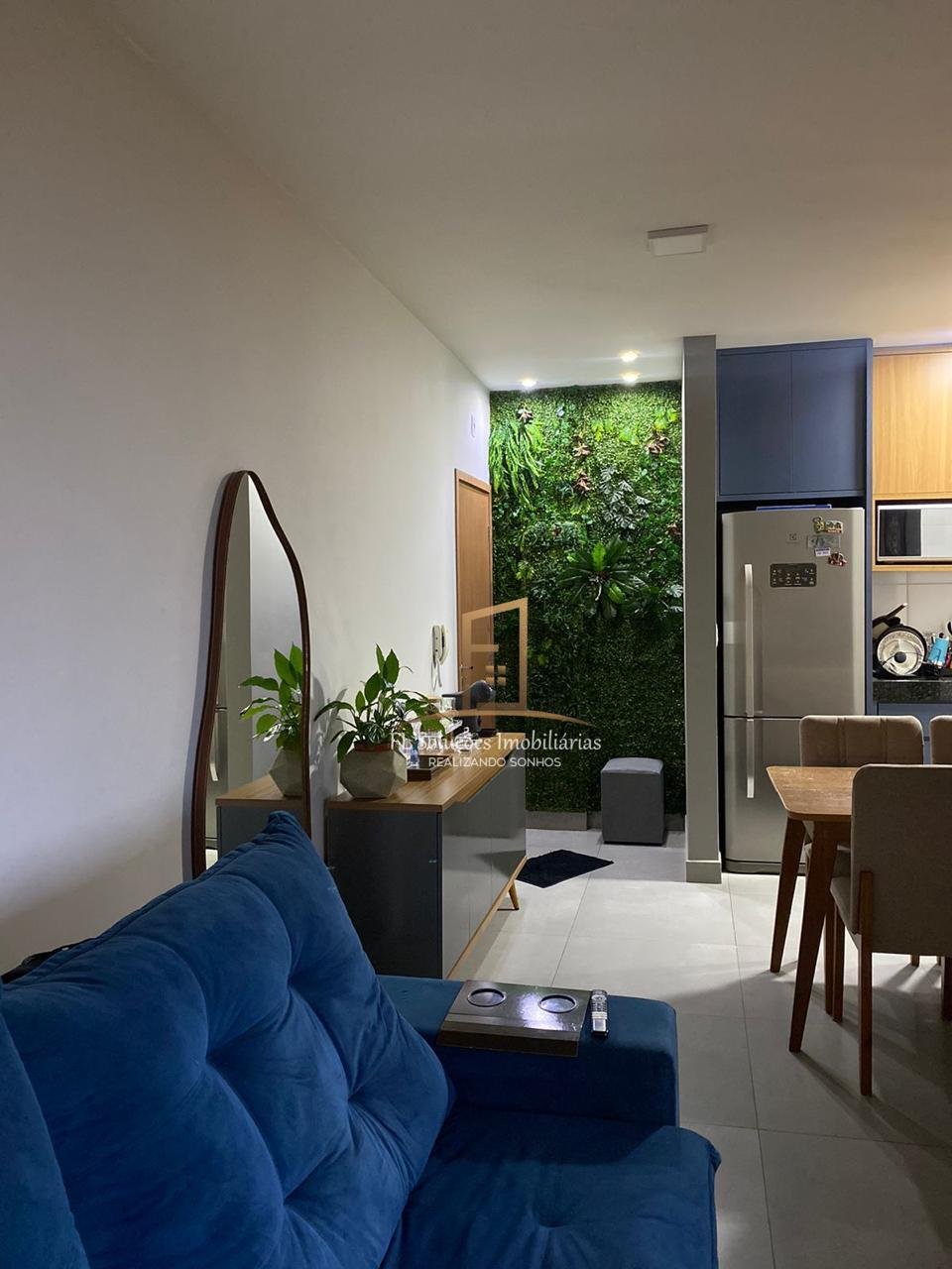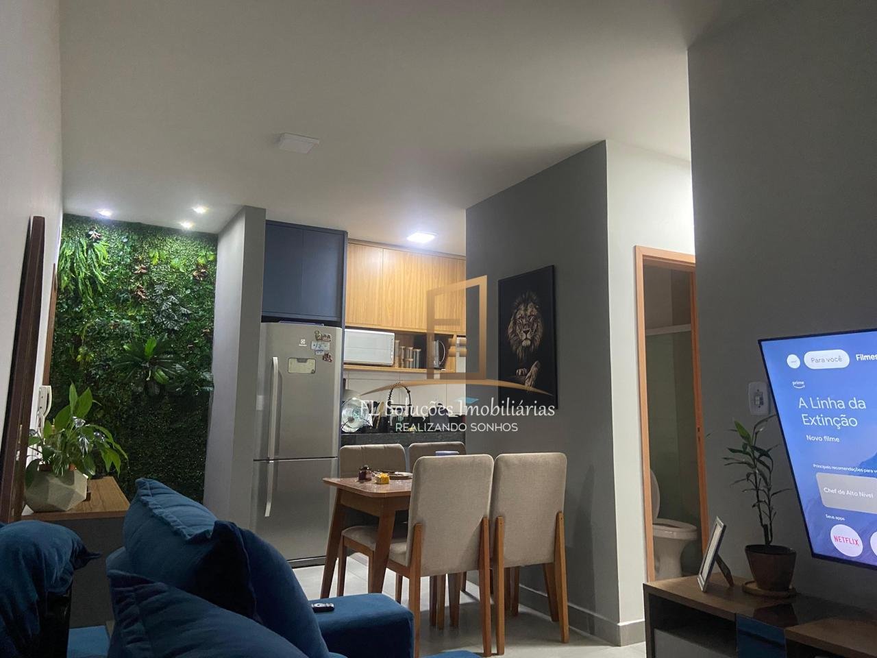 2 Quartos, sendo 1 suíte, Sala de estar e Sala de jantar integradas, Banheiro Social, Cozinha com armário, Lavanderia e sacada, oferecendo praticidade e bom aproveitamento dos espaços.