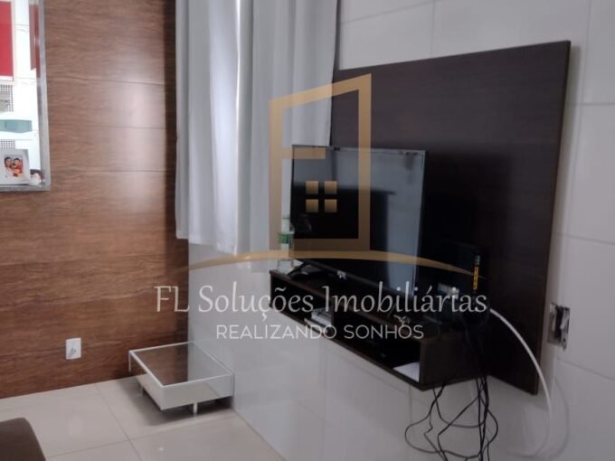 2 quartos com armários, Sala ampla, Cozinha com armário, Sacada, Banheiro Social, Área de serviço, Elevador, Garagem.