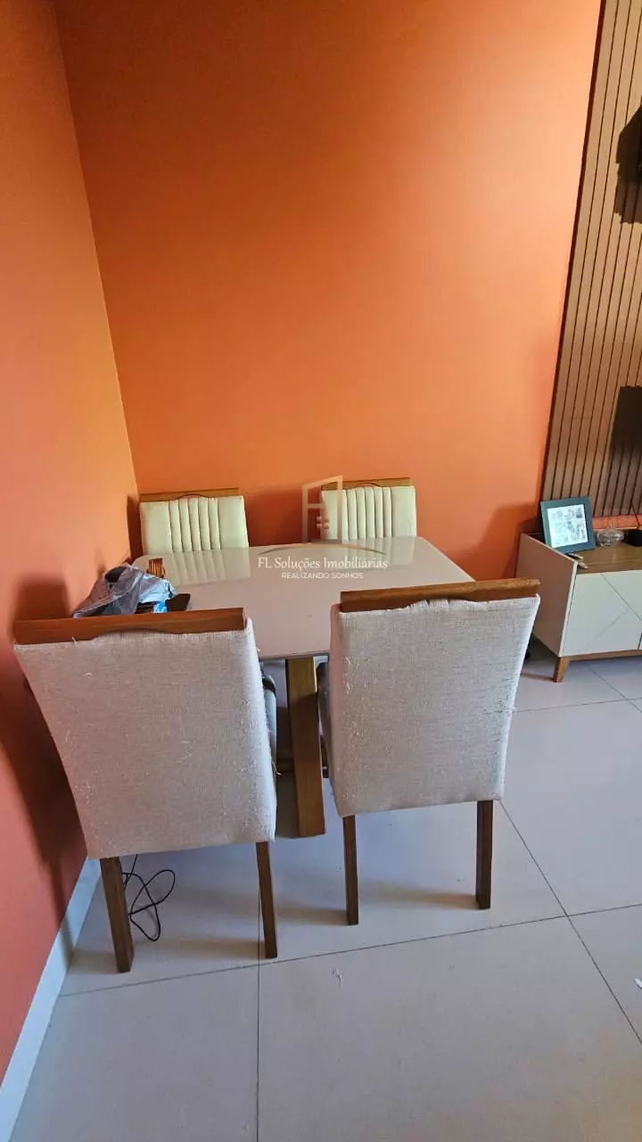 3 quartos sendo 1 suite, Sala em dois ambientes, Cozinha com armário, Banheiro Social, Lavanderia, Garagem.
