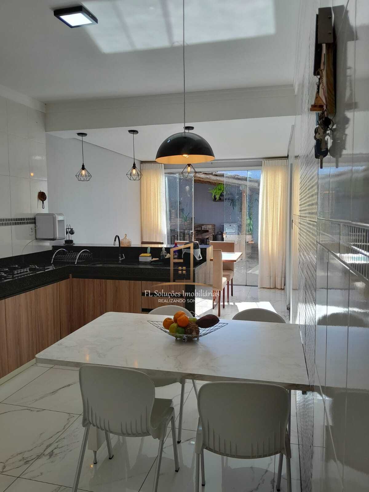 4 quartos, sendo 1 suíte com ar-condicionado e armários planejados, Cozinha moderna com armários, Sala, Banheiro Social, Área de serviço, Área Gourmet com churrasqueira, Banheiro Externo, Garagem Coberta.