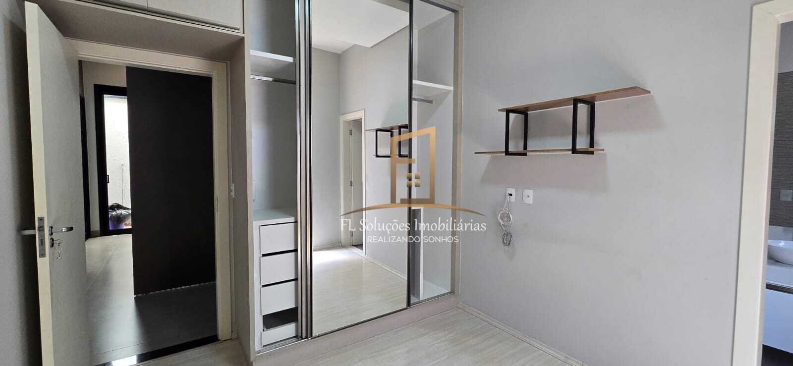 São 3 suítes com armários planejados, ar-condicionado e jardim externo, sendo a suíte master com closet. Possui ainda roupeiro no corredor, trazendo praticidade ao dia a dia, conta com sala ampla com pé-direito duplo, painel para TV e ar-condicionado de 18.000 BTUs, proporcionando imponência e bem-estar