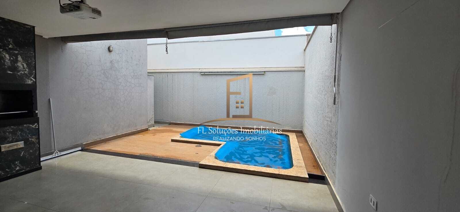 A área externa conta ainda com piscina, jardim com banco de balanço e um armário externo em alvenaria.