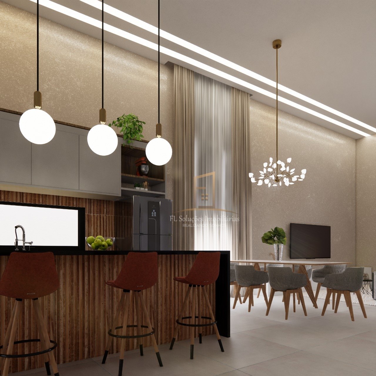3 suítes, sendo uma suíte Master com closet, Sala de Tv, Sala de jantar, Cozinha integrados com pé direito duplo, Escritório, Lavanderia separada c/ depósito, Piscina aquecida com prainha, cascata, led, hidromassagem e automatizada com controle remoto, Ducha externa, 02 Lavabos, Área gourmet c/ churrasqueira, Garagem.