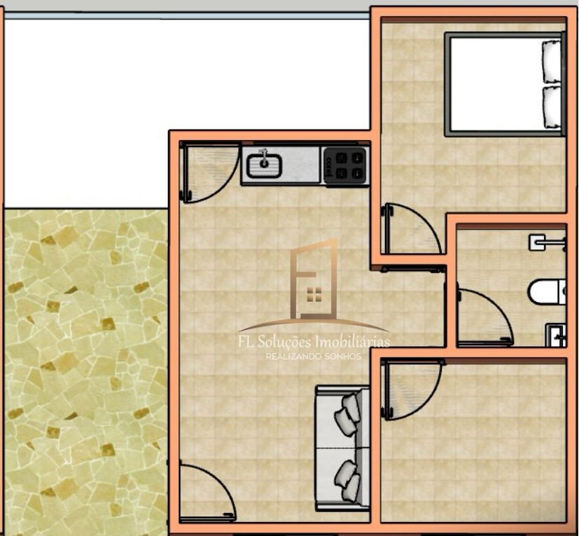 2 Quartos sendo 1 suíte, Sala, Cozinha, Banheiro Social, Área…