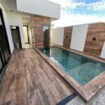 3 quartos sendo 1 suíte com closet, Sala, Copa, Cozinha toda planejada, Área de laser com bancada, Área Gourmet com churrasqueira revestida porcelanato, Banheiro externo, Dispensa, Garagem.