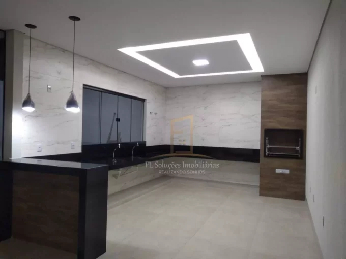 3 quartos sendo 1 suíte, Sala , Cozinha, Banheiro social, Quintal, Garagem para 2 carros.