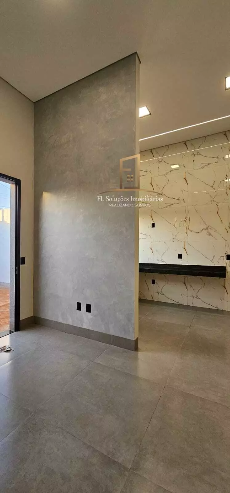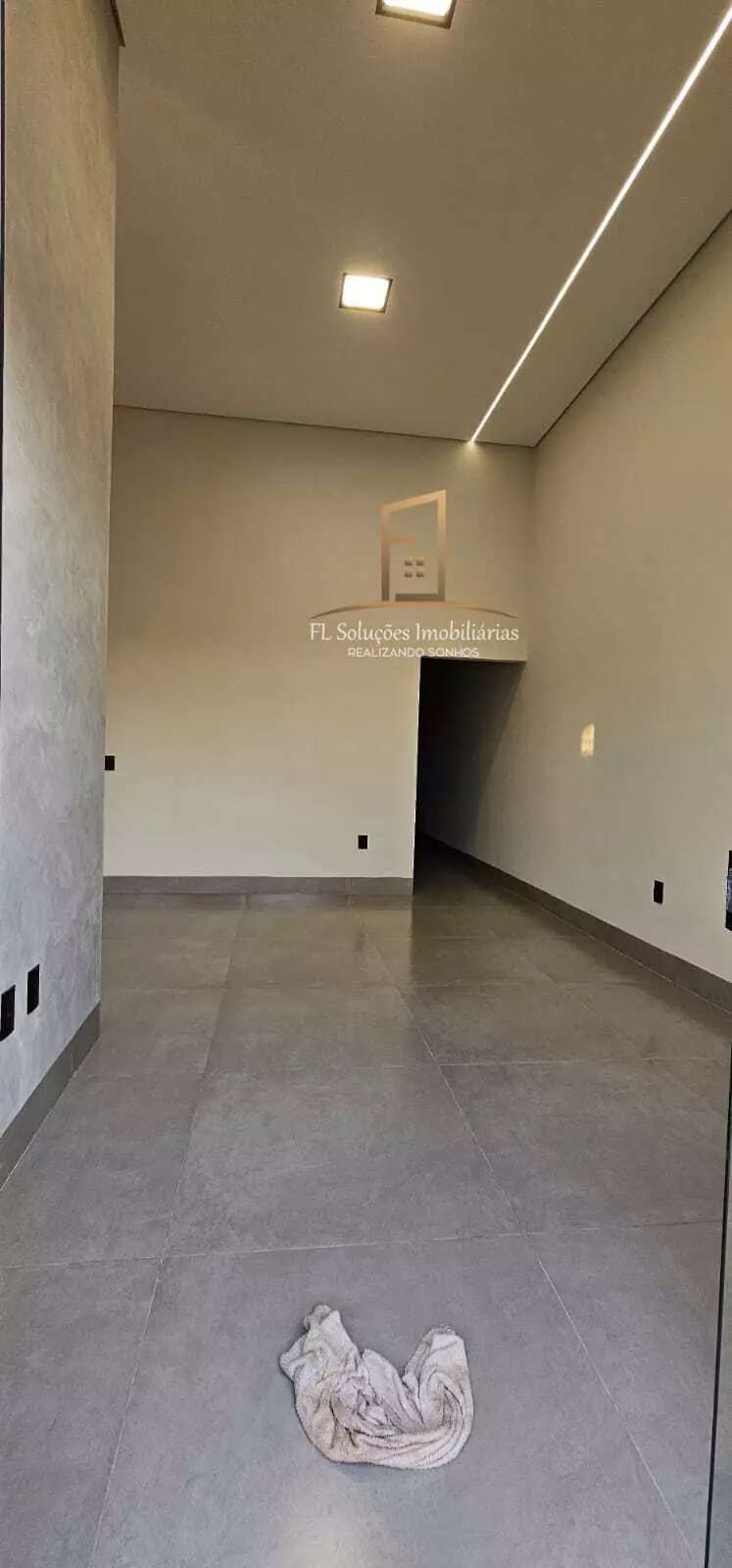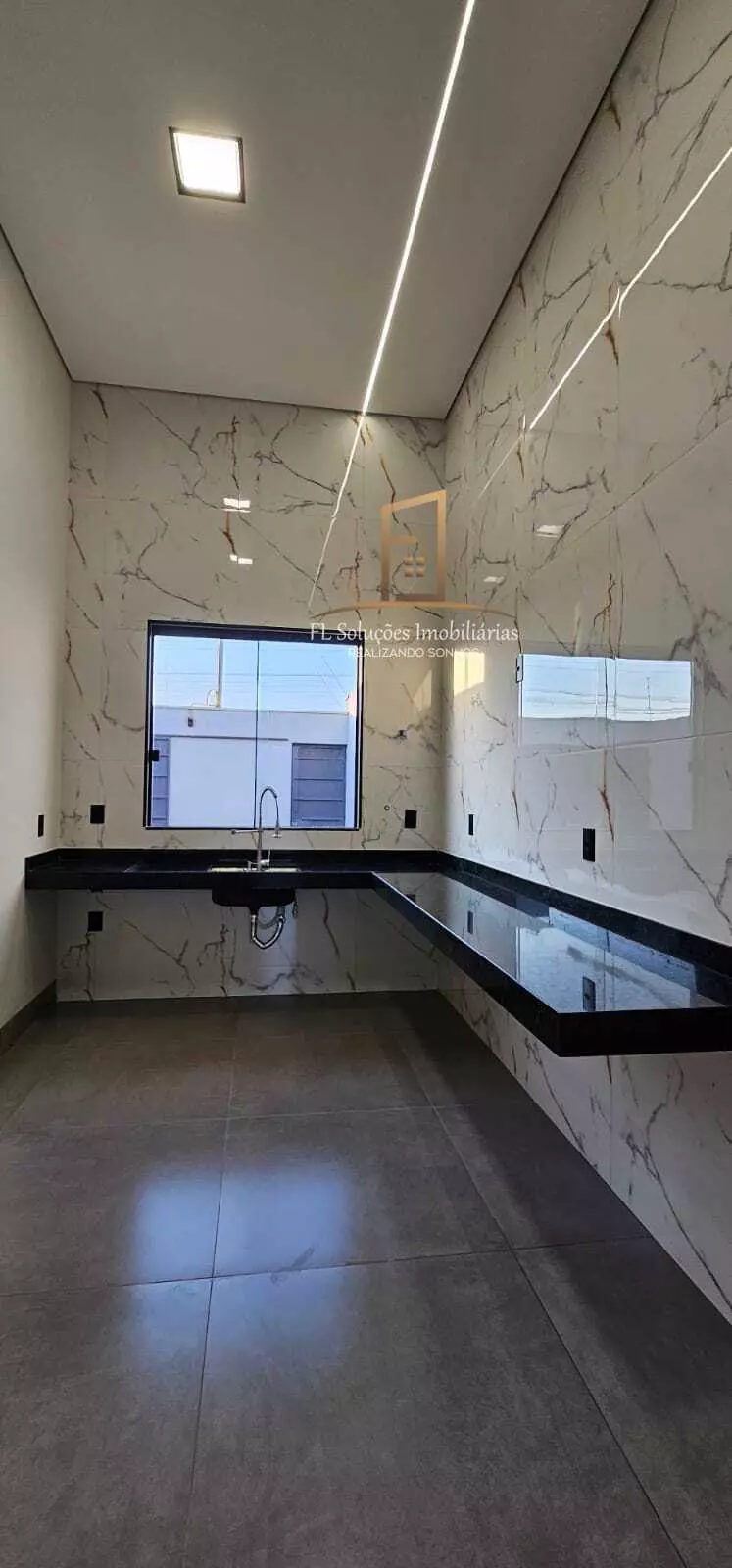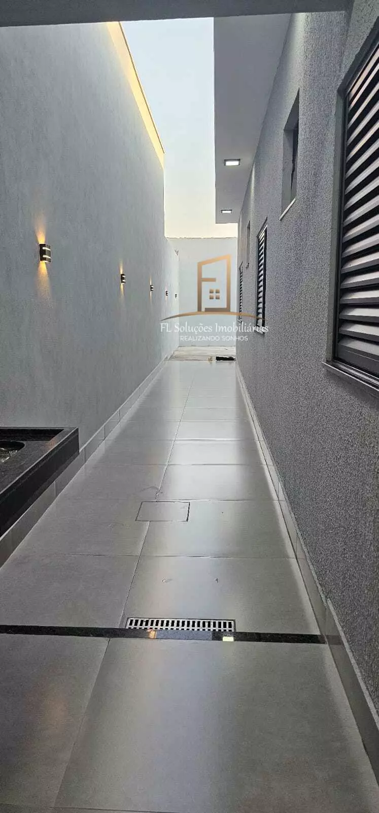 3 Quartos sendo 1 suíte, Sala, Cozinha com pé direito alto 4,5, Banheiro Social, Lavanderia coberta, Espaço para área gourmet no fundo, Garagem.