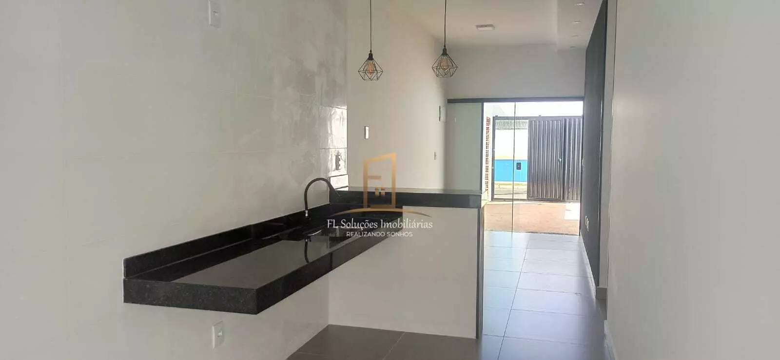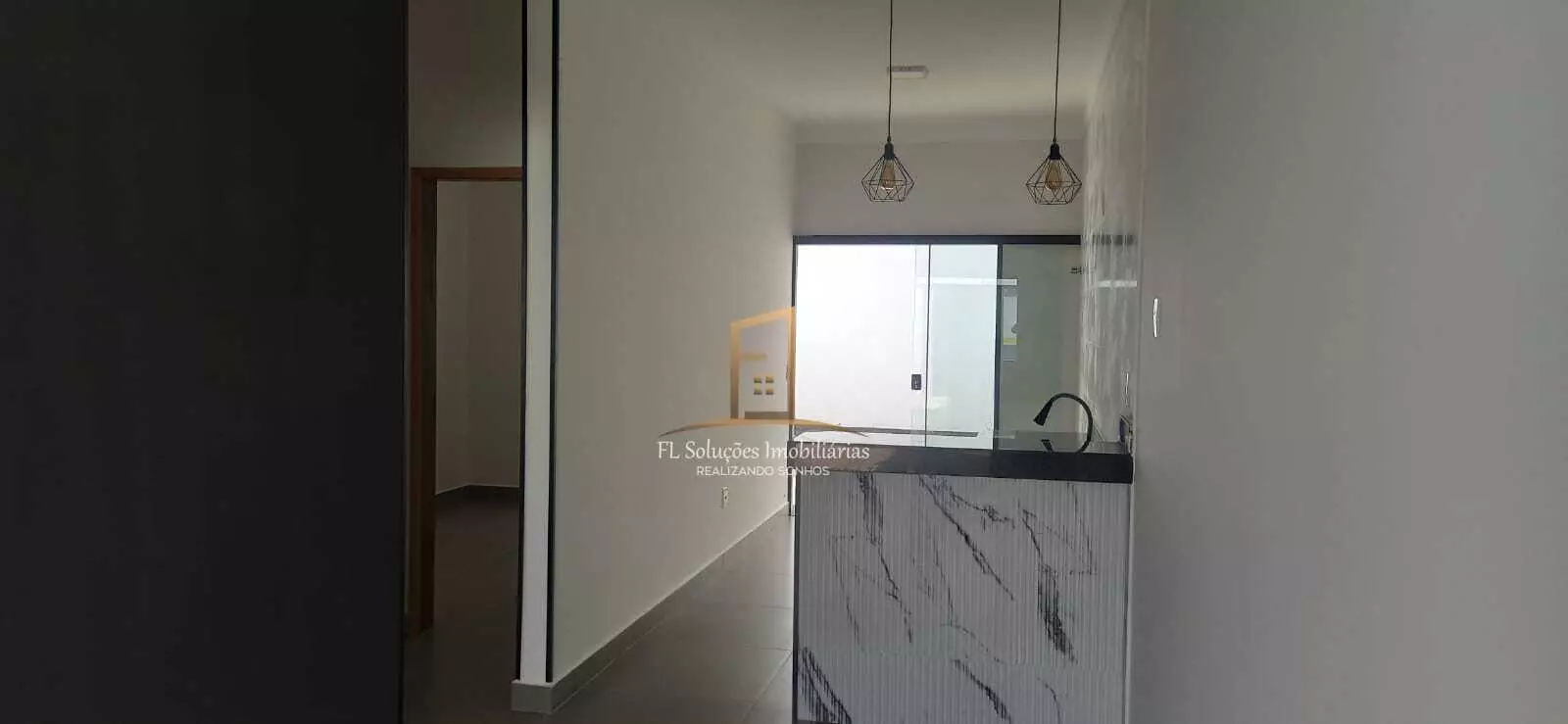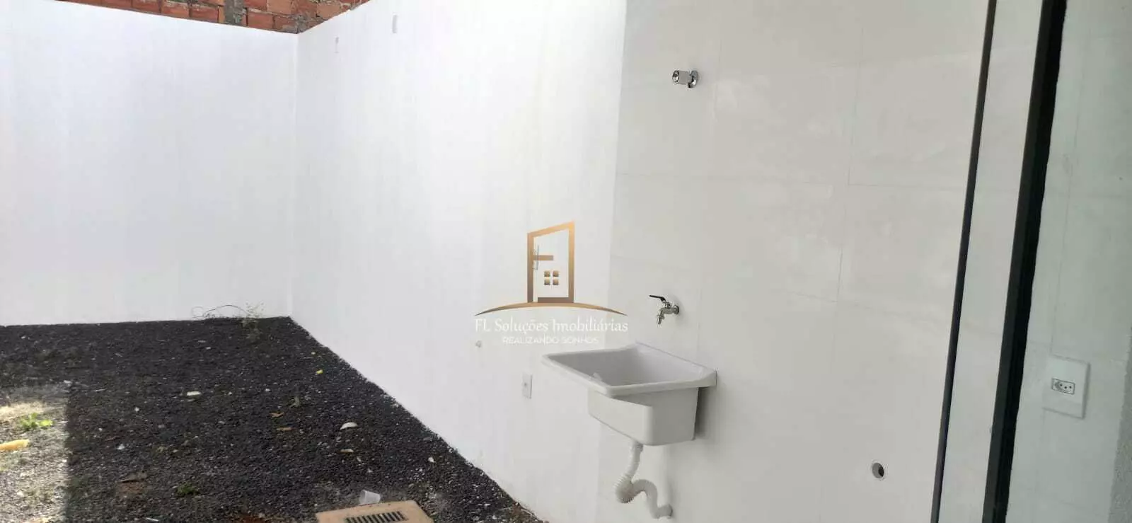 2 quartos com 1 suíte, Sala ampla, Cozinha americana, Lavanderia coberta, Garagem.