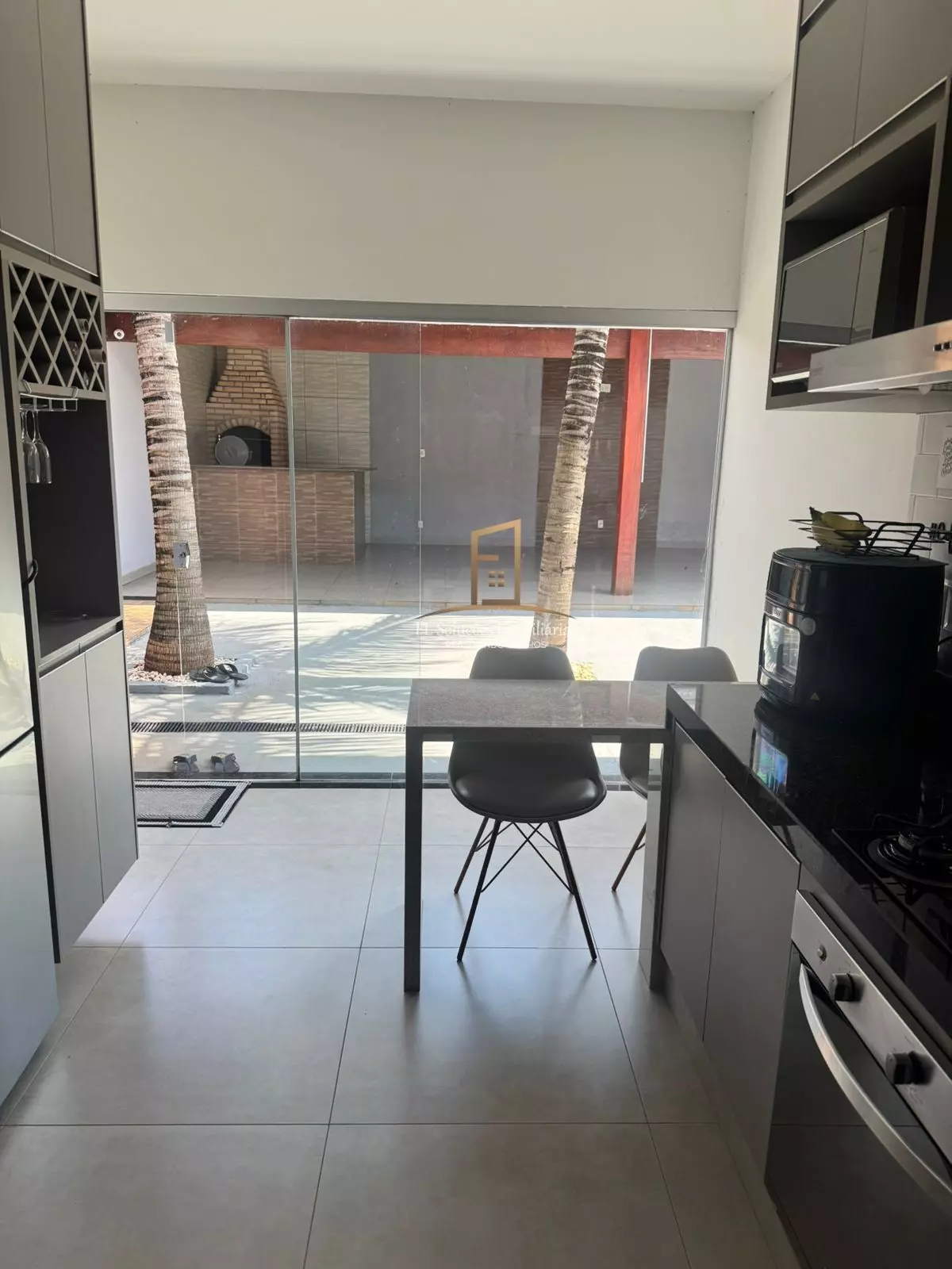 2 Quartos com armário, Sala, Cozinha americana com armário, Banheiro Social, Área de serviço coberta, Área Gourmet com churrasqueira, Varanda, Quintal, Garagem.