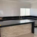 3 quartos sendo 1 suíte com armário e closet, Sala de estar, Cozinha com armários planejados, Área de serviço, Área Gourmet com churrasqueira, Varanda, Quintal, Garagem coberta.