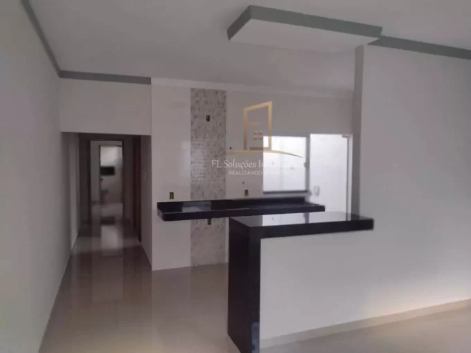 3 quartos sendo 1 suíte, Sala e cozinha conjugadas, Banheiro Social, Área de serviço, Quintal, Garagam.