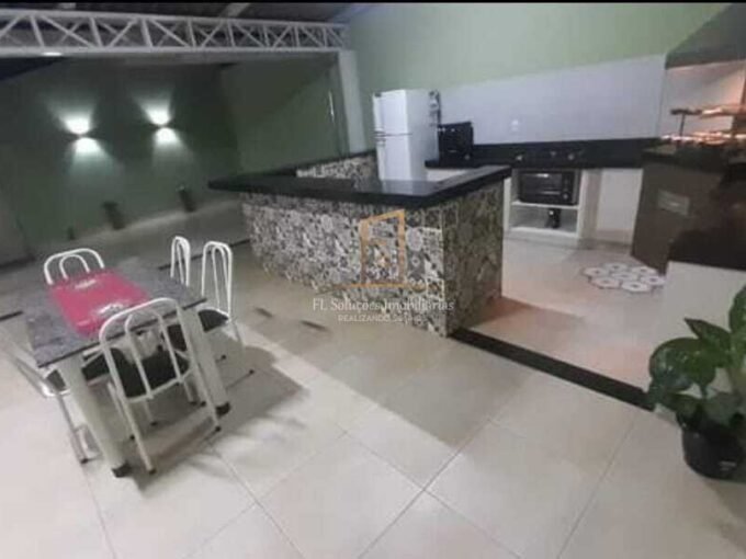2 Quartos, Sala, Cozinha, Banheiro Social, Área de serviço, Quintal, Varanda, Garagem.