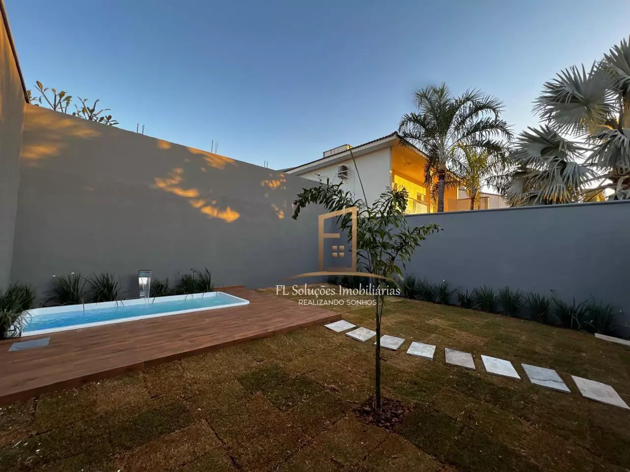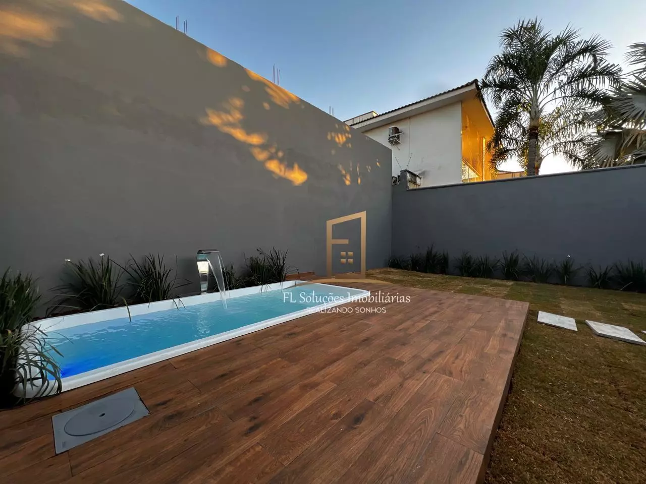 3 quartos sendo 1 suíte (Quarto1 com ar-condicionado quarto2 com jardim de inverno), Sala ampla com painel e iluminação em LED, Cozinha com planejados, coifa, cooktop e forno, Banheiro social com armário, Lavanderia separada, Espaço gramado com jardim encantador, Área de lazer completa com churrasqueira, Piscina aquecida, Hidro, Cascata e leed, Varanda, Garagem.