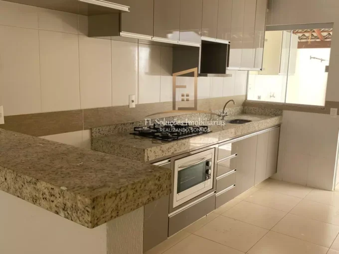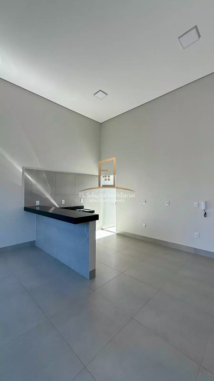 2 quartos sendo 1 suíte, Sala Pé direito alto, Cozinha Pé direito alto e bancada de granito, Banheiro Social, Área de serviço, Garagem.