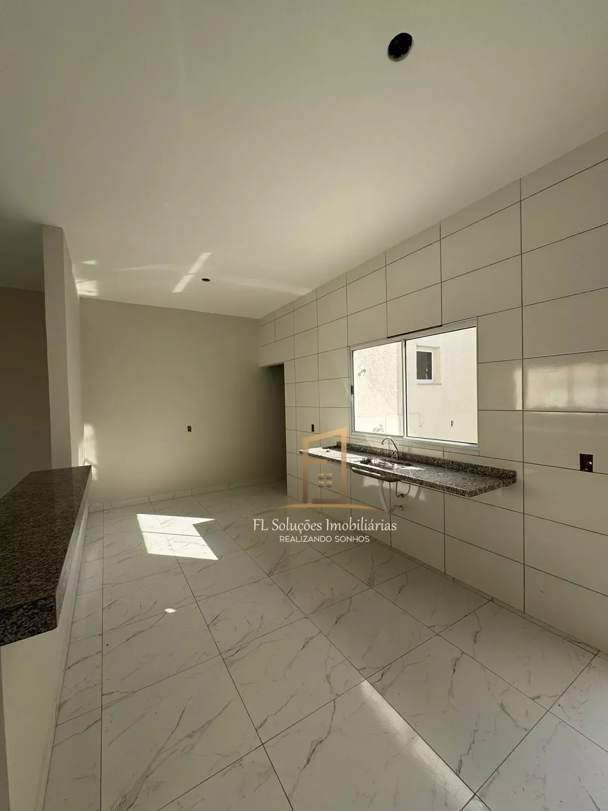 2 Quartos sendo 1 suíte, Sala, Cozinha, Banheiro Social, Área de serviço, Garagem para 2 carros.
