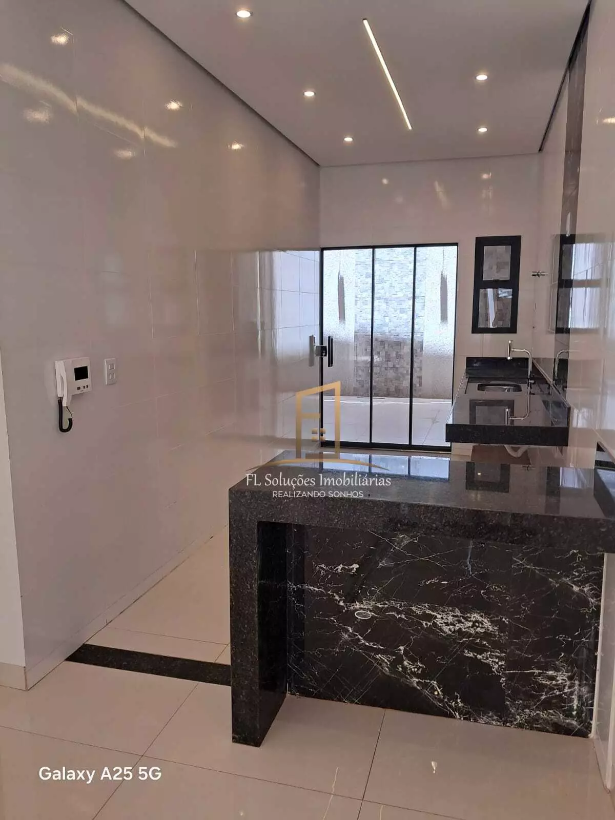 03 quartos sendo 02 suítes, Sala ampla, Cozinha com Bancada granito, Banheiro Social, Área de serviço separada, Jardim de inverno, Área Gourmet com churrasqueira, Varanda, Portão eletrônico, Interfone tipo vídeo porteiro, Garagem