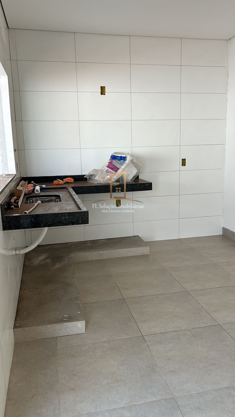 3/4 sendo 1 suíte, Sala jantar, Sala tv, Cozinha, Área de serviço, Varanda fundo com banheiro externo, Garagem 2 carros.