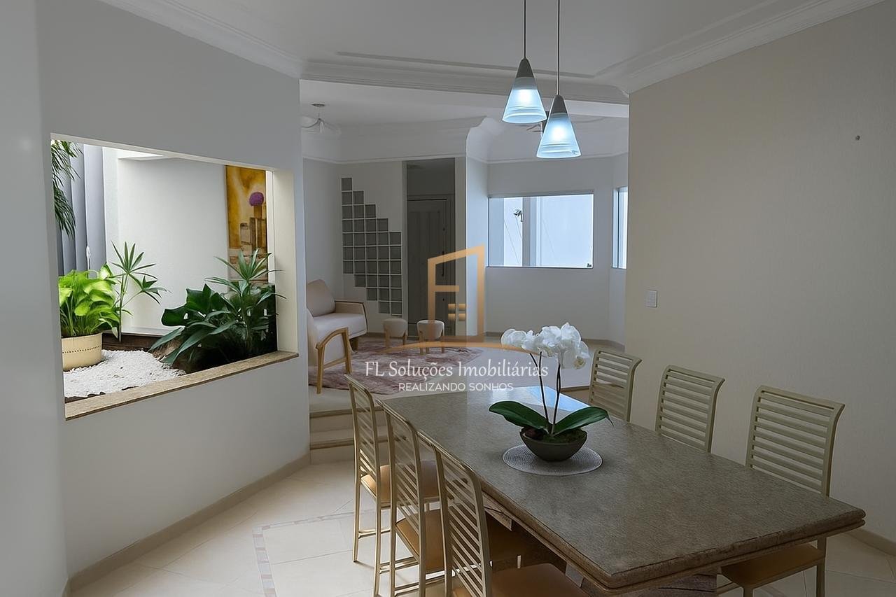 3 dormitórios (sendo 1 suíte master com closet), Sala de visita, Sala de jantar, Cozinha ampla, Escritório, Área de serviço, Despensa, Área ampla Coberta, Garagem coberta (até 4 carros).