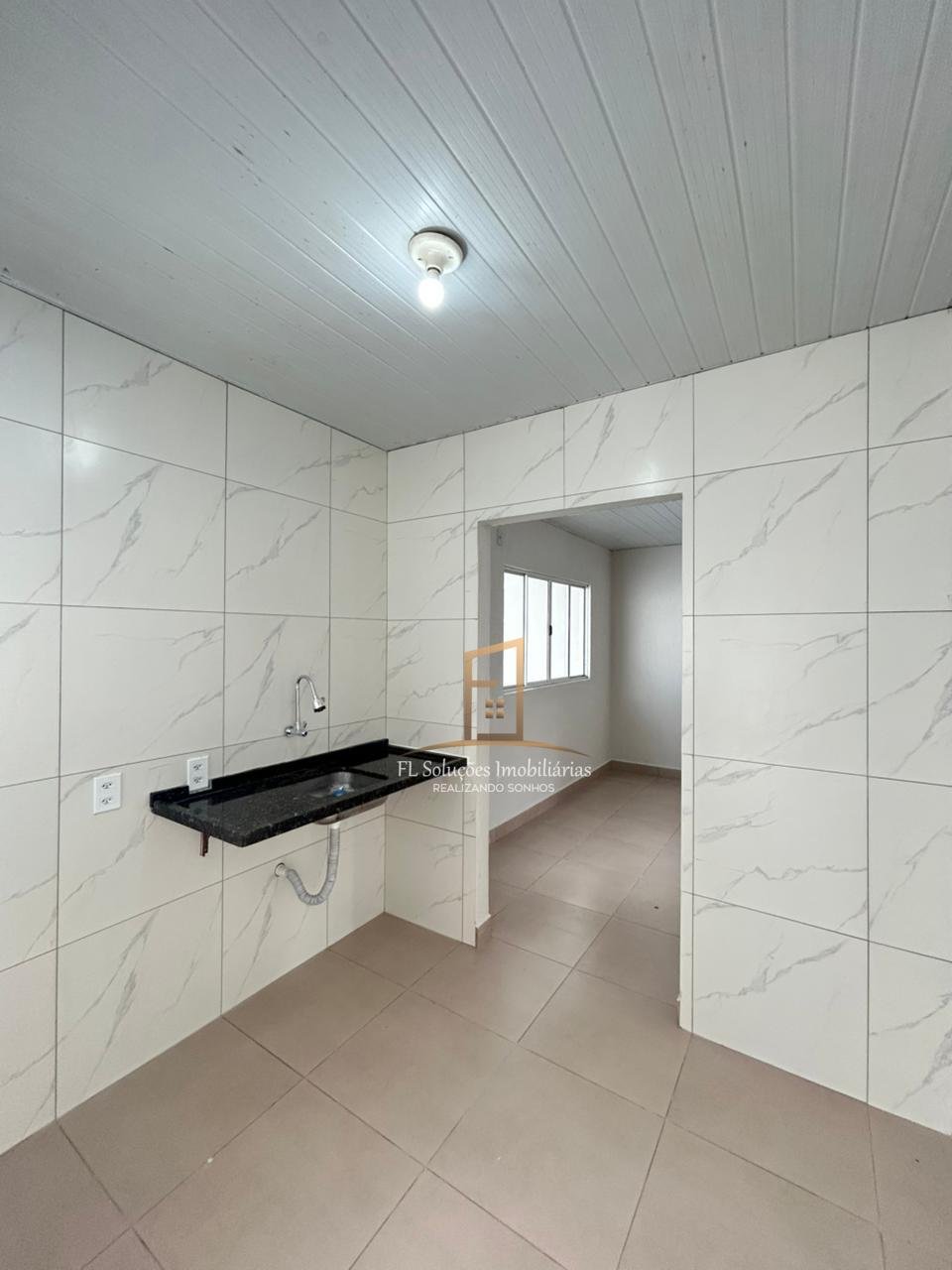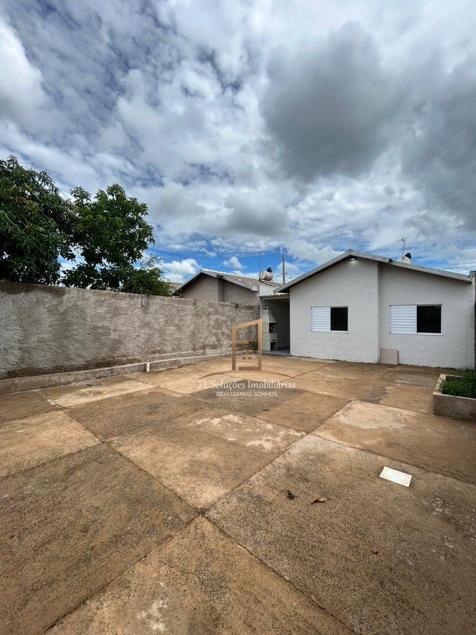 2 quartos, Sala ampla, Cozinha tradicional com bancada em granito, Banheiro social com revestimento até o teto, Área de serviço coberta, Área com churrasqueira, Quintal amplo todo cimentado, 2 vagas de garagem sendo uma coberta.