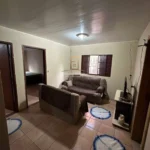 3 Quartos, Sala conjugada com a Cozinha, Banheiro Social, Área de serviço, Quintal, Garagem para vários carros e área nos fundos para construir.