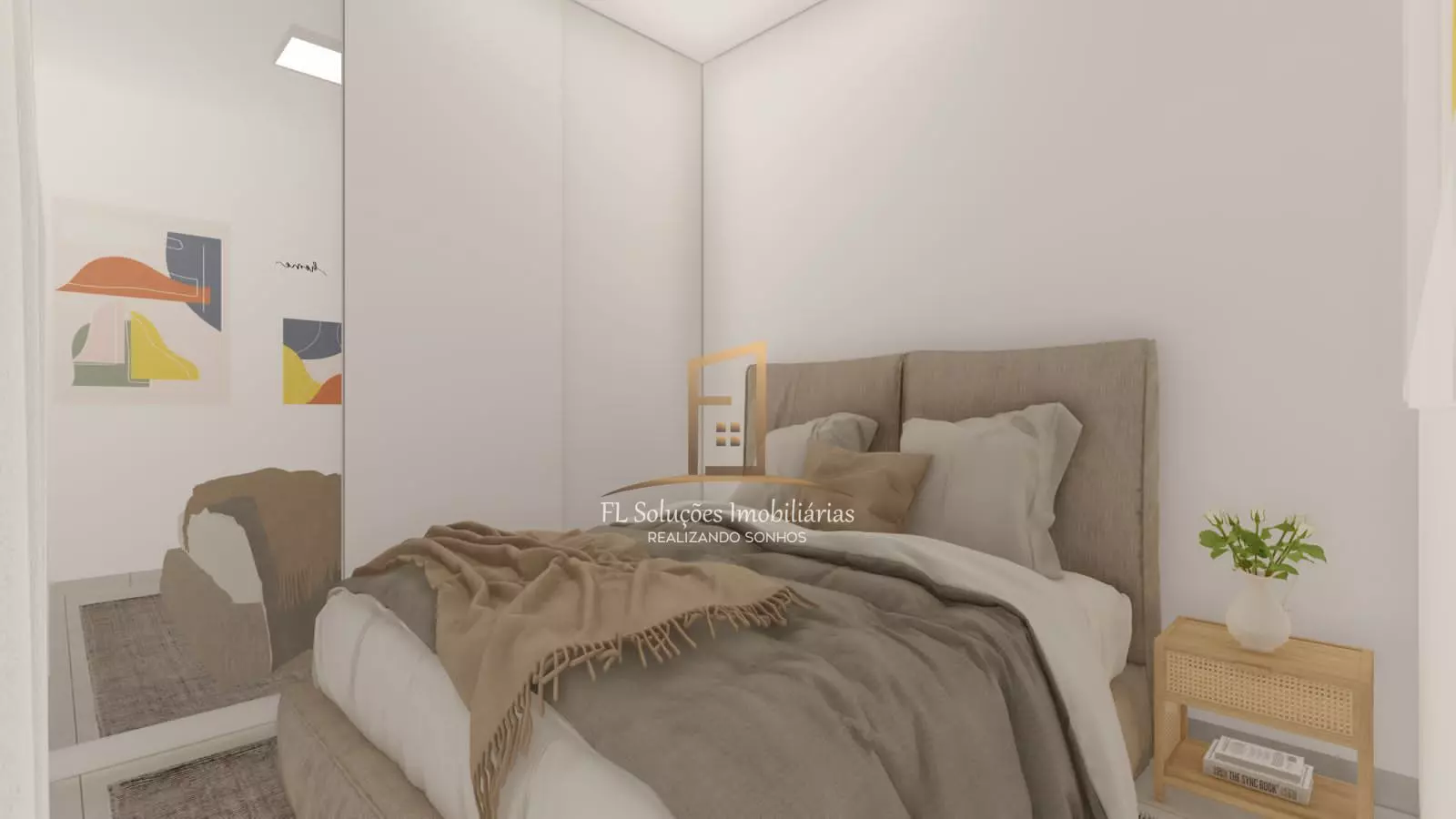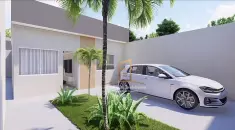 2 quartos, Sala ampla, Cozinha americana com pia e bancada em granito, Banheiro social, Área gourmet para churrasqueira, Área de serviço externa coberta, 2 vagas de garagem.