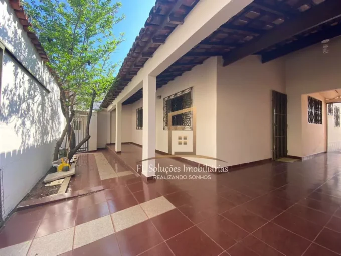 3 quartos, Sala, Cozinha, Banheiro Social, Área de serviço, Varanda, Quintal, Garagem coberta.