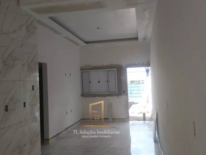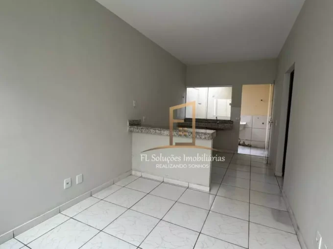 3 quartos sendo 1 suíte, Sala ampla, Cozinha americana com pia e bancada em granito, Área de serviço separada, Banheiro social, Quintal, Garagem.