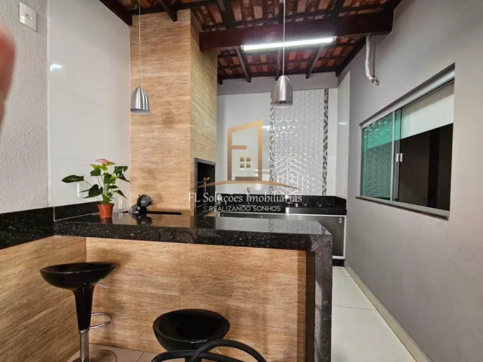 2 quartos, Sala, Cozinha, Banheiro Social, Área de serviço, Espaço Gourmet com churrasqueira, Garagem.