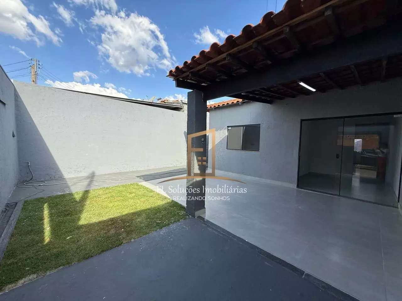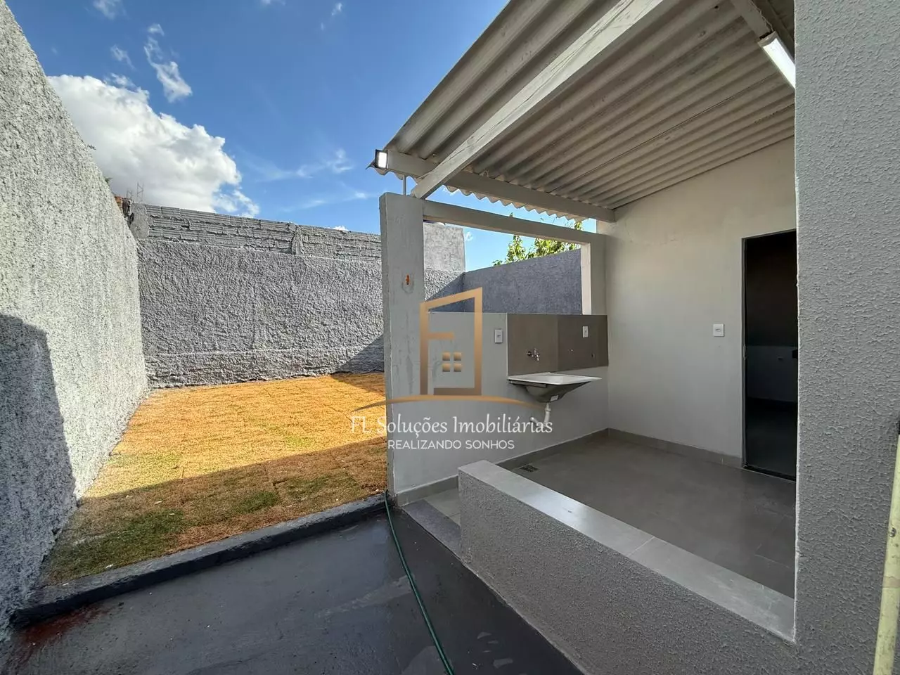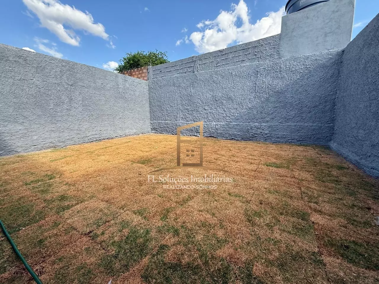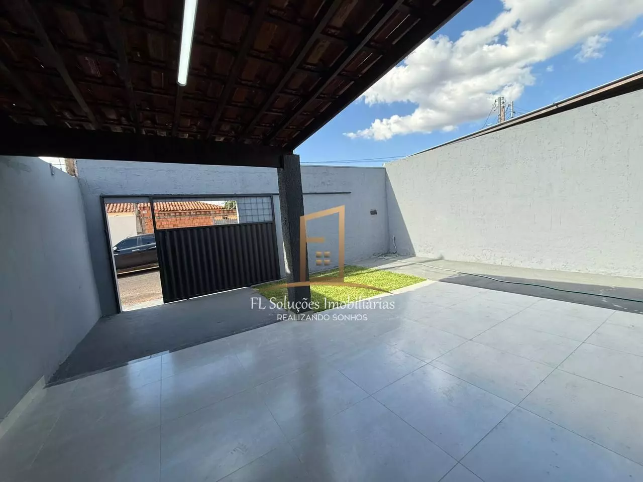 Quintal amplo e gramado — perfeito para lazer e futuras ampliações, Garagem espaçosa.