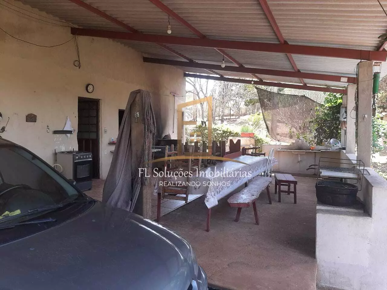 4 quartos, Cozinha, Banheiro, Banheiro externo, Varanda, Garagem pra 3 carros.
