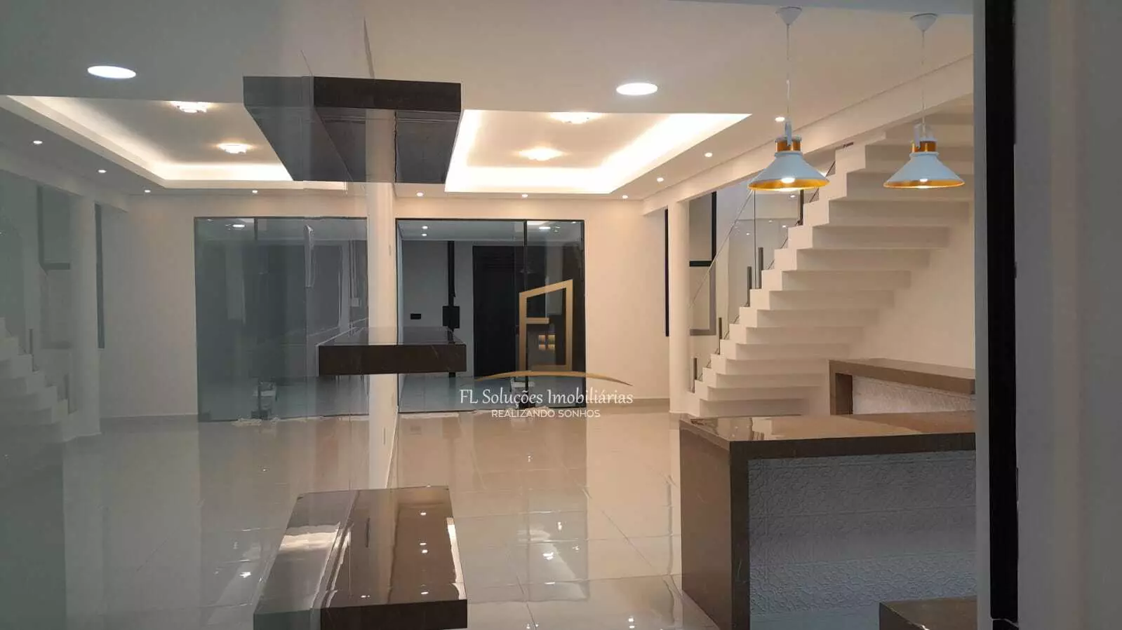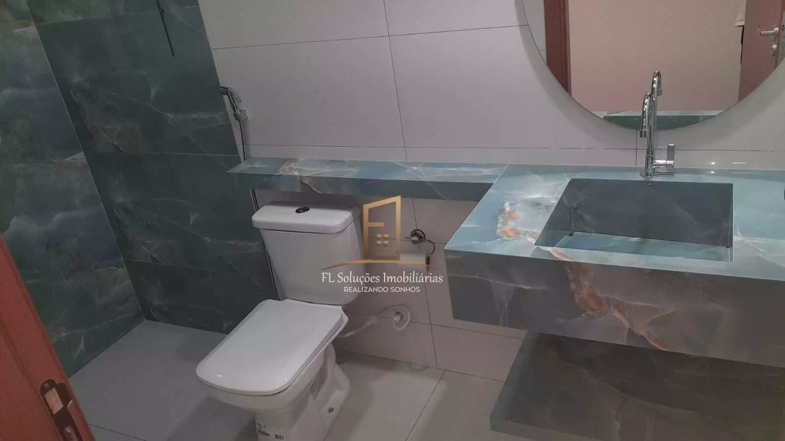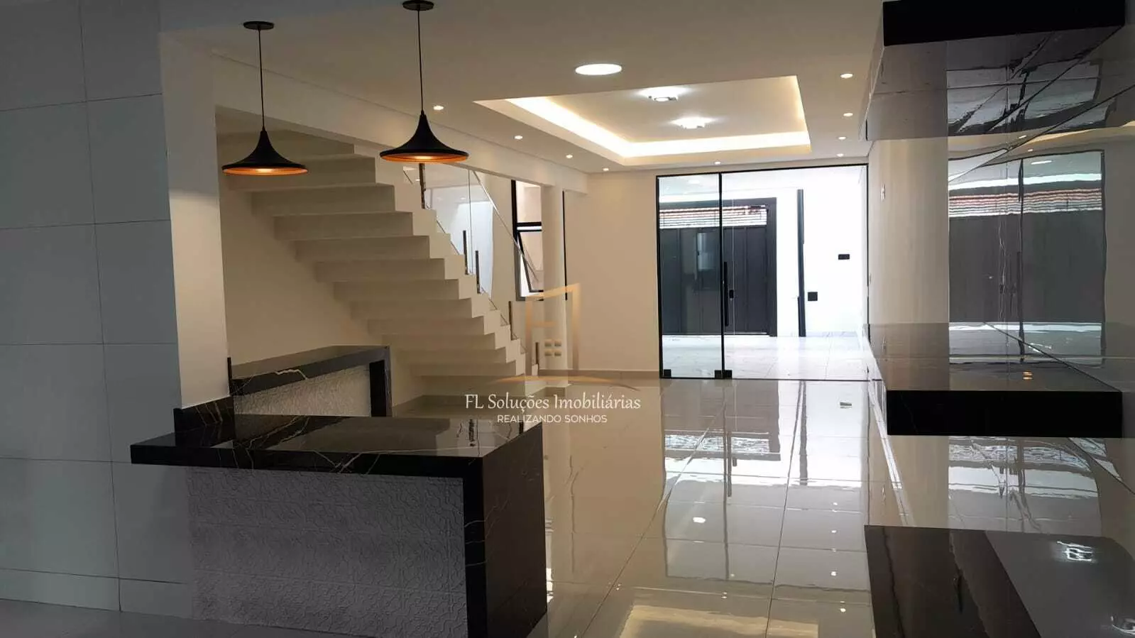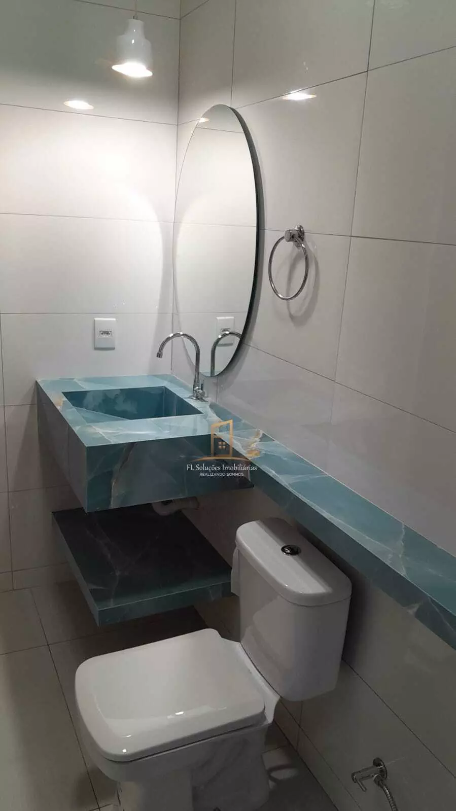 02 pavimentos sendo: 3 quartos 1 suíte, Sala, Copa, Cozinha americana, Banheiro Social, Área serviço, Área Gourmet com churrasqueira ducha externa, Garagem coberta imóvel todo em porcelanato polido, esquadrias alumínio e blindex, pias, balcões e lavatórios esculpidos.