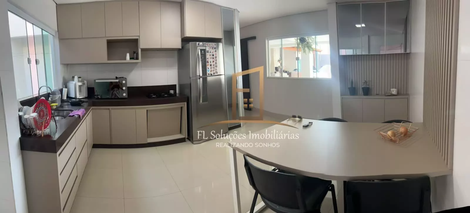 3 Quartos sendo 1 suíte com closet e sacada, Sala ampla,Cozinha toda no marmore com armário, Área Gourmet, Sacada ampla, Banheiro Externo, Escada de vidro, Hall de entrada, Lavabo, Dispensa, Lavanderia, Garagem.